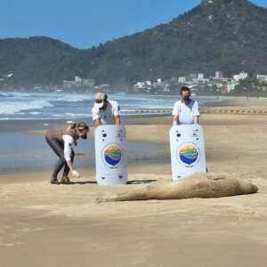 Projeto de Monitoramento de Praias da Bacia de Santos – PMP-BS UNIVALI – Trecho 4, responsável pelo atendimento de animais marinhos em nossa região @univali.penha ou pelo 47 92140960.